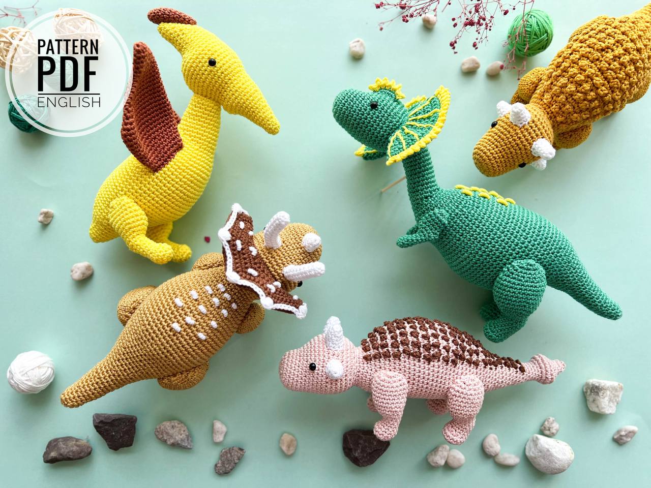 Bring the world of dinosaurs to life with our Dino Delight Crochet Patterns! This comprehensive PDF guide provides easy-to-follow, step-by-step instructions for creating six adorable dinosaur toys, including a Pterodactyl, Triceratops, Brachiosaurus, Stegosaurus. Perfect for both beginners and experienced crafters, each pattern ensures you can crochet these charming prehistoric creatures with confidence. Each toy, made from our patterns, boasts exceptional detail and durability, making them ideal for unique gifts or delightful decorations. Download your pattern today and start crafting your own dinosaur friends!