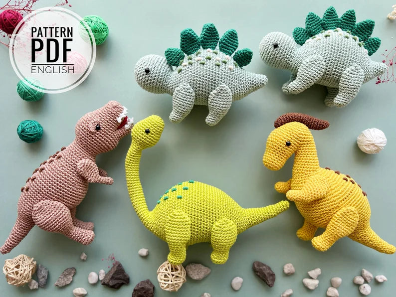 Embark on a fun and creative crochet journey with our Dino Delight patterns. Perfect for making unique handmade gifts or adding a touch of prehistoric charm to your home decor. Download your pattern today and start crafting your own adorable dinosaur friends!