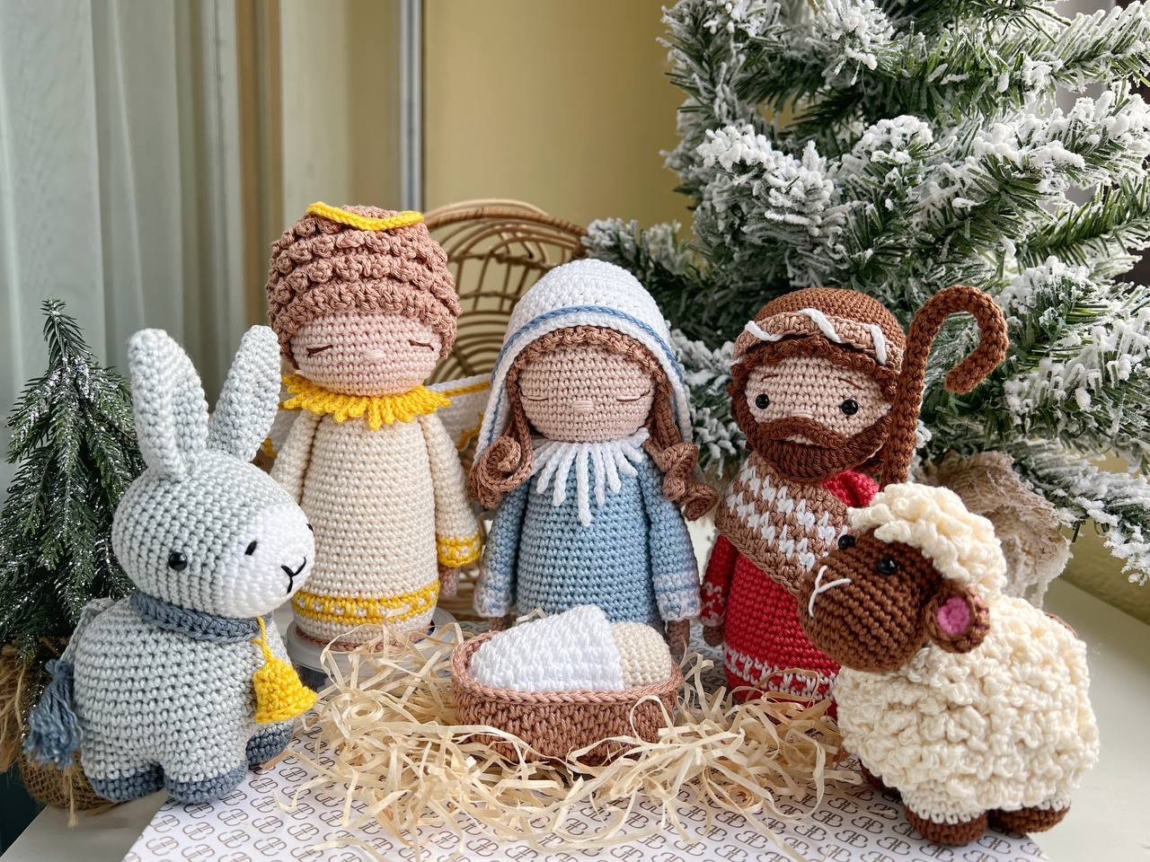 🧸 Mary, Joseph, Baby Jesus in the manger, Angel, Donkey, Sheep